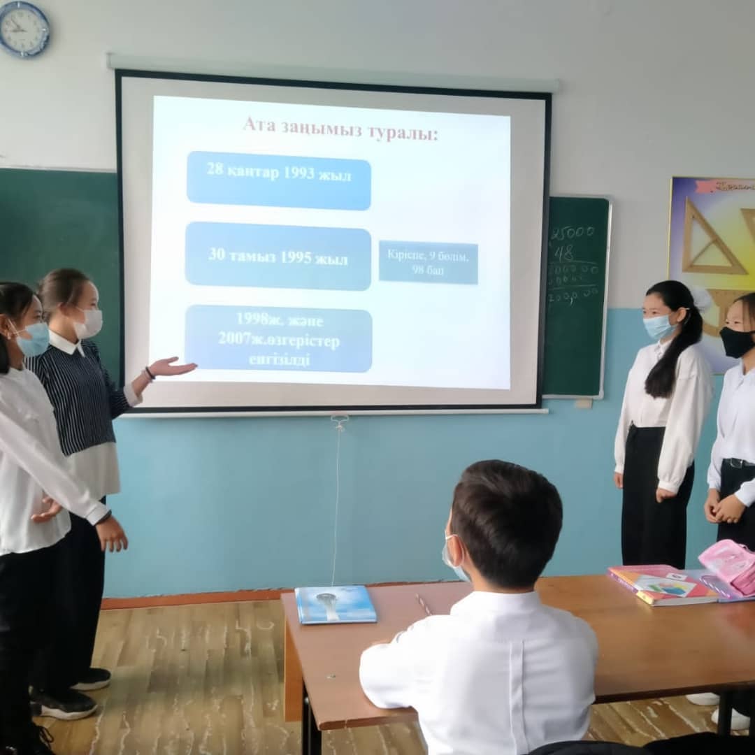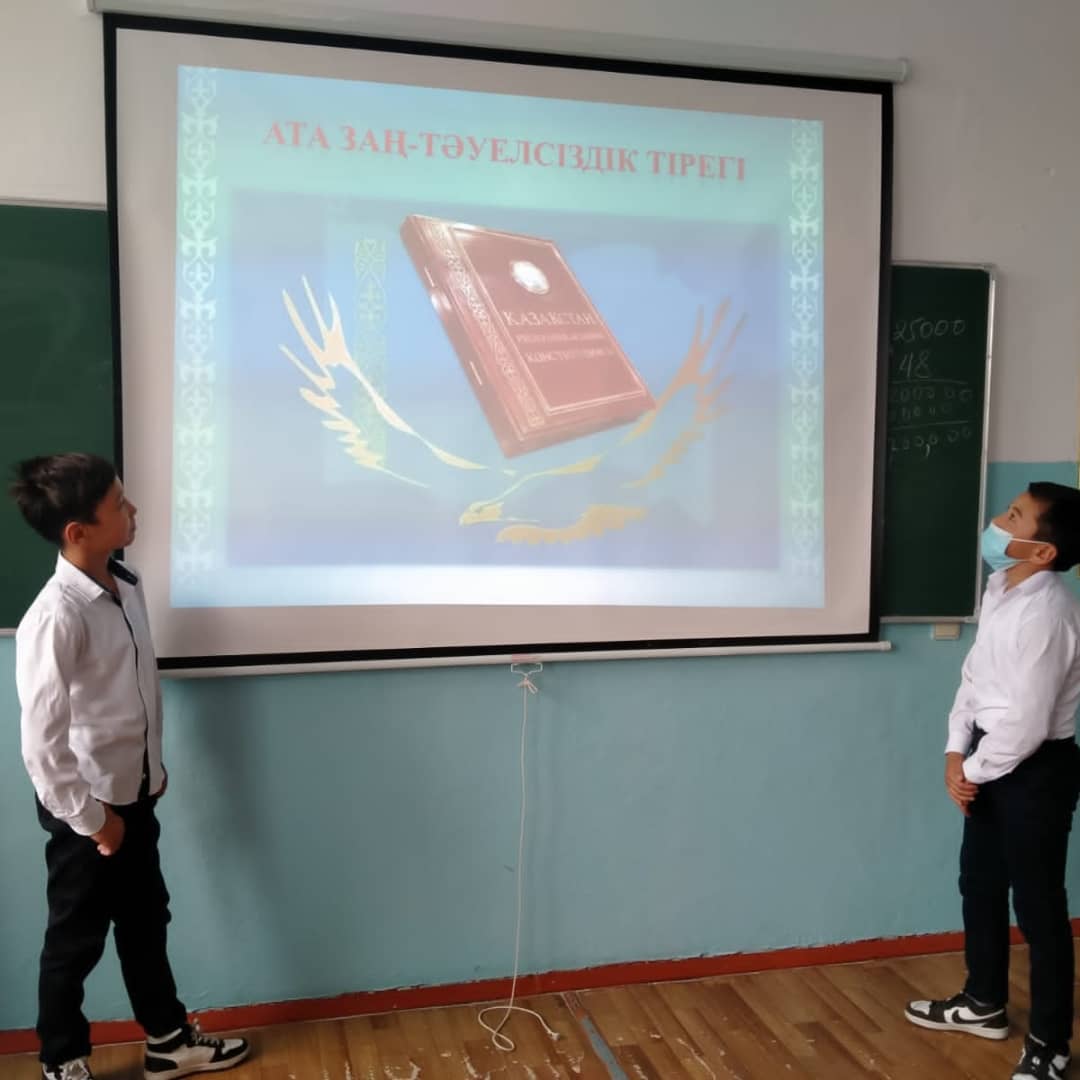 2021 жылдың 5 қазанында «Бала құқығы-адам құқығы» тақырыбындағы айлық жоспарына сәйкес 5-9 сынып оқушыларына «Балам бол, басқа бол бәріңе заң ортақ», 10-11 сынып аралығы „Құқық және міндет“ сынып сағаттары өткізілді. Оқушыларға құқықтық тәрбие беруде олардың құқықтық сана-сезімін қалыптастырудың маңызы зор. Құқықтық сана – қоғамдық сананың ерекше түрі.Сондықтан, құқықтық тәрбие беруде оқушылардың санасын тәрбиелеу, жауапкершілік сезімін көтеру, ұйымшылдық пен тәртіптілікті нығайту - мектептегі оқу-тәрбие жұмыстарының негізгі бір бағыты.